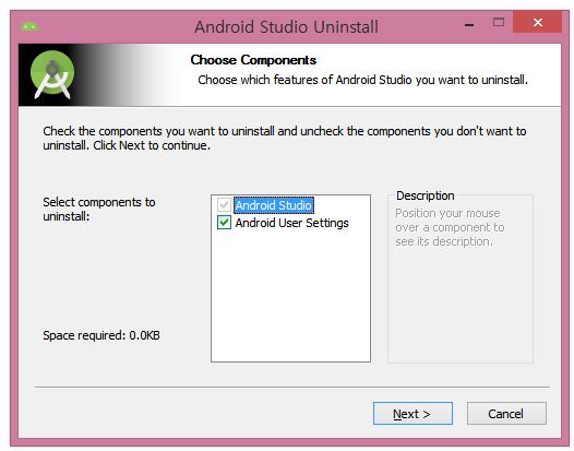 2. 깔끔하게 삭제할 것이므로, Android User Settings항목 체크 후 next 클릭