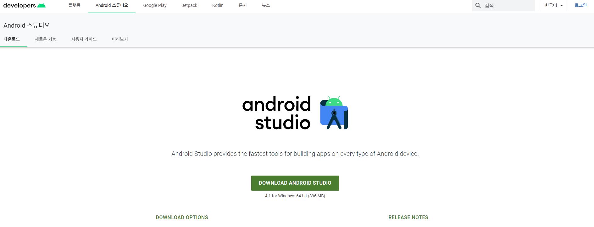 1. 안드로이드 사이트 접속 (https://developer.android.com)