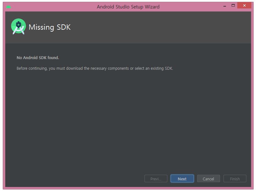 SDK설치를 위한 화면입니다. next 클릭