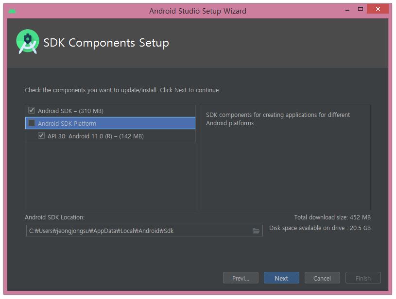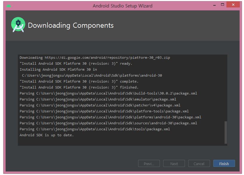 SDK파일들을 별도로 삭제해주지 않으면 신규 설치 시 SDK설치 화면은 건너뛰게 되므로 삭제해주시기 바랍니다.