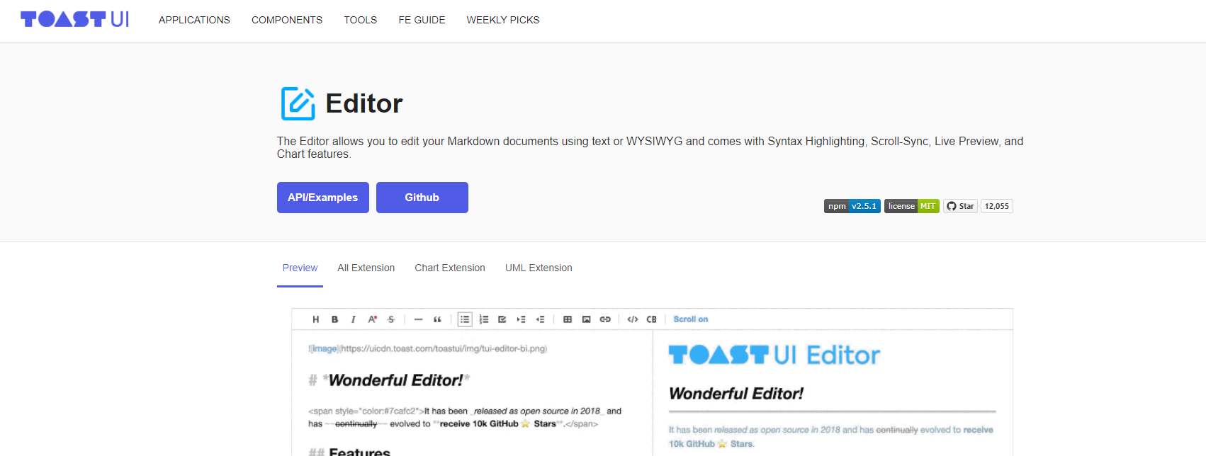 TOAST UI Editor는 NHN에서 개발한 오픈소스로, 마크다운과 위지윅 방식을 지원하는 에디터입니다.