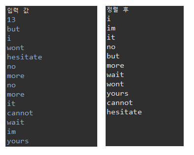 (문제 링크 : https://www.acmicpc.net/problem/1181)