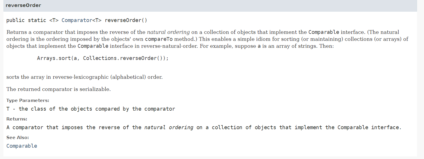 Collections.reversOrder()에 대한 API문서도 한번 참고해보시면 좋습니다.