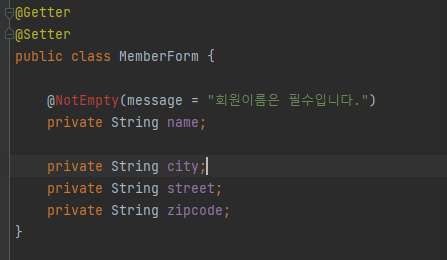 그냥 단순하게 DTO성격으로 쓸려고 멤버 폼 클래스를 만들었는데 @NotEmpty 어노테이션에서 validation이 자동완성에서 안 나오는 현상이 발생하면서 import도 없음!!